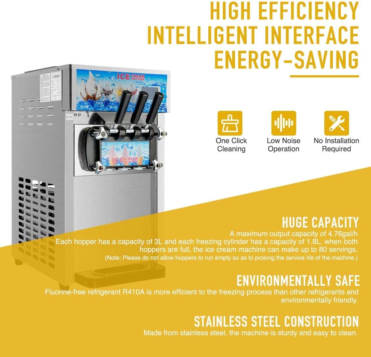 Amazon Com Co Z Commercial Ice Cream Machine Soft Serve Stainless Steel 3 Flavors Silver 18l H Silver 1200w Perfect For Snack Bar Restaurants Supermarkets Home Kitchen