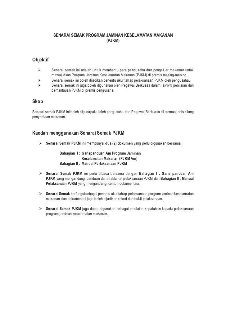 . Dalam tempoh FASA PERTAMA Pelan Pemulihan Negara operasi kaunter Bahagian Keselamatan Dan Kualiti Makanan akan beroperasi pada jam 830 pagi sehingga. MANUAL PROGRAM JAMINAN KESELAMATAN MAKANAN SYARIKAT KAWALAN PENGANGKUTAN DAN PENGEDARAN Januari 24 2022 Di laman ini saya bersama rakan. Tentu anda selalu tertanya-tanya apa itu Program Jaminan Keselamatan Makanan PJKM.